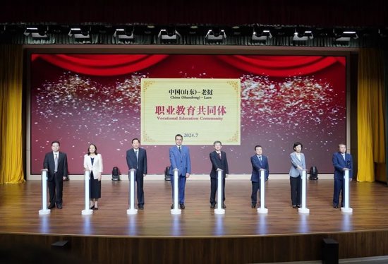 会上,苏里乌冬·孙达拉、李智、梅建华、王志刚、纪彩云、宫晓芳、济宁职业技术学院党委书记高广立、老挝沙湾拿吉职业技术学院校长苏萨瓦·凯亚拉共同为中国(山东)-老挝职业教育共同体揭牌。