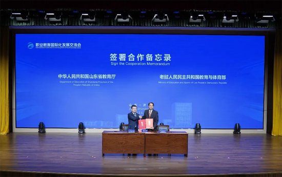 王志刚代表山东省教育厅与老挝教育与体育部签署合作备忘录。