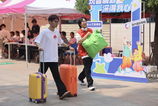 各学院报到点热闹非凡,结合专业特色精心准备了别出“新”裁的迎新活动,让新生们在轻松的氛围中感受校园文化,在欢声笑语中融入山艺大家庭。音乐学院和现代音乐学院在文东校区广场上奏起悠扬的旋律,老生与新生共同演绎精彩乐章;美术学院、设计学院均设置特色打卡点,为新生和家长们定格下灿烂笑容,见证成为山艺人的第一天;戏剧学院在学院门口种下“心愿树”,同学们亲手将花朵开满枝头;舞蹈学院为萌新们准备了才艺展示转盘,学生们穿戴着少数民族服装服饰翩翩起舞,尽展专业风采;戏曲与曲艺学院学长学姐们现场展示快板、水袖等专业特长,同时准备了迎新展板,邀请新生们共同绘制戏曲脸谱;书法学院为新生准备了传统扇面,萌新们纷纷用毛笔写下开学寄语;传媒学院为当天生日的新生准备了蛋糕和小礼物;艺术管理学院、传媒学院、城市艺术与创意学院、国际艺术交流学院纷纷开展砸金蛋、幸运抽奖等活动,为报到新生带来神秘惊喜。