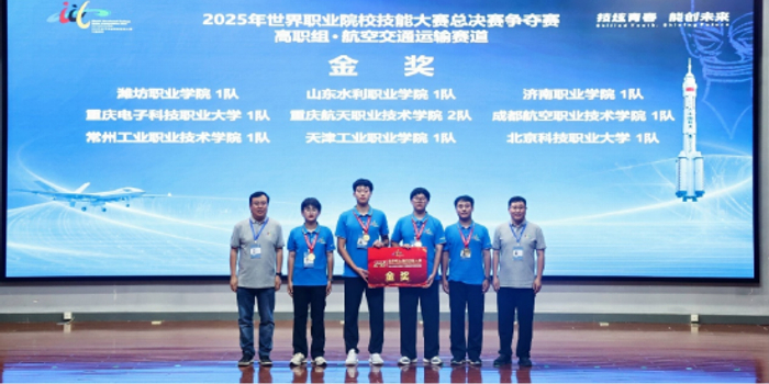 在这场高规格、高强度的赛事中,山东水利职业学院无人机应用技术专业张承珑、刘冰、刁云鹏、蔡博四位同学组成的参赛团队,凭借沉稳的赛场发挥与卓越的专业实力,一路过关斩将,最终不负众望,成功斩获金奖,为学院赢得了荣誉,也彰显了学院在航空交通运输相关专业领域的教学成果与人才培养实力。