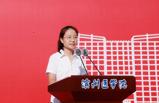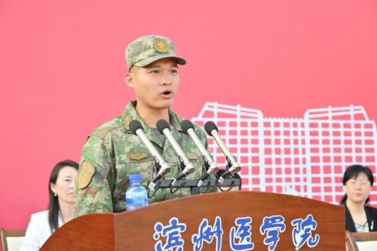 于景科在主持典礼时希望同学们铭记师长教诲,秉承“仁心 妙术”校训,在滨医沃土展现青春作为,彰显青春风采,贡献青春力量,在踔厉奋发的征程中绽放青春光芒。教师代表、药学院张桂龙教授,校友代表、中山大学附属第一医院尹军强教授致辞,希望同学们学有所成,思有所得,情有所获,不负时代,不负韶华,书写属于自己的奋进之笔。在校生代表、护理学院张静雯,本科新生代表、第二临床医学院刘子懿,研究生新生代表、第一临床医学院司希增发言,表示将以梦为马、不负韶华,让青春在守护健康的征途上绽放璀璨光芒。魏敬帛代表军训教官作表态发言。