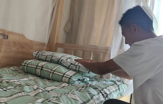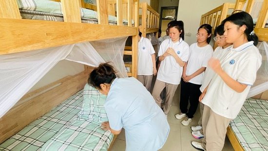 训练结束后,内务整理环节随即展开。“内务整理是军训的重要环节,不仅是整理房间,更是培养大家自律、细致、严谨的生活习惯。”在教官的带领下,学生们回到宿舍,仔细聆听舍管的讲解,专心关注舍管的示范,同学们认真学习叠被、整理个人物品等技能。宿舍里,衣物、洗漱用品也被逐一归置整齐。从起初的手忙脚乱到逐渐得心应手,同学们在这一过程中,不仅学会了打理生活,更培养起自律、整洁的良好习惯。