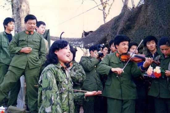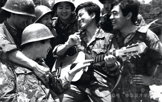 1979年,他随部队奔赴广西前线,历经120余天的战火洗礼;1985年,他又义无反顾地前往云南老山前线,坚守了整整365天。在蚊虫肆虐、暑湿难耐的前线阵地,他随慰问团为前线战士送去温暖与欢笑,用实际行动诠释着对国家和人民的赤胆忠诚。在硝烟弥漫的日子里,他与战士们结下了超越生死的深厚情谊,火线入党,立功受奖。这两次参战,480余天的战场淬炼,让他将“铁心跟党走”的坚定信仰融入血脉,不仅使他火线入党、立功受奖,更铸就了他坚韧不拔、勇于担当的英雄本色。在老山前线,《解放军报》战地记者对他进行了采访,图片中他擦拭乐器的手与紧握钢枪的臂,共同诠释着“战士与艺术家”的双重神圣使命。