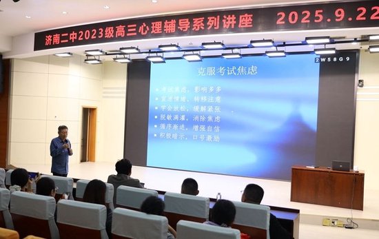 9月22日,济南二中特邀北京师范大学心理学教授、博士生导师、全国知名心理学专家郑日昌教授走进学校,与高三学生分享“考试焦虑应对的心理学智慧”。