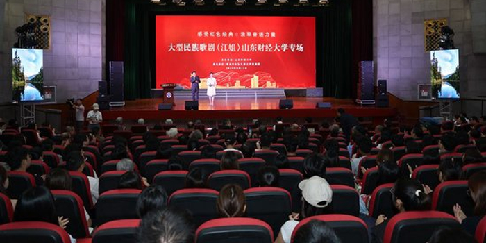 关注感受红色经典,汲取奋进力量。9月25日下午,山东财经大学舜耕校区礼堂内经典民族歌剧《江姐》的主题歌《红梅赞》响彻演出大厅。青岛市市北区文化馆弘文海之声歌剧团的精彩表演带领观众走进热血沸腾的峥嵘岁月,聆听穿越时空的英雄赞歌。
