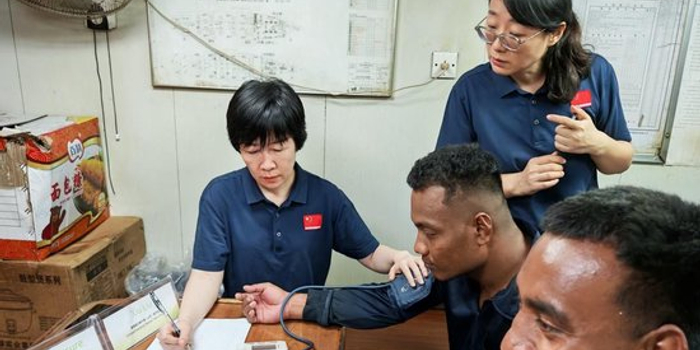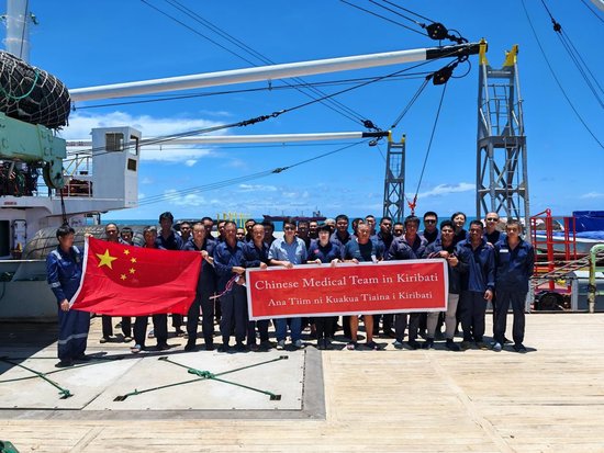 关注在太平洋海域作业的金枪鱼围网渔船,每次进入基里巴斯塔拉瓦港靠泊的时间都十分短暂,船员无法前往当地医院就医,加之远洋渔业作业环境的高风险性与特殊性,船员健康保障面临现实困难。应上海开创远洋渔业有限公司“金汇18号”船的邀请,9月21日,由滨州医学院烟台附属医院整建制派出的第四批中国(山东)援基里巴斯医疗队到船上开展义诊服务。
