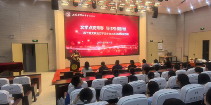 历下区作家协会主席团成员逐一向在场学生介绍了自身创作经历与作协工作,同时结合活动主题,向学生传递了“坚持文学热爱、以笔书写青春”的鼓励与祝福。