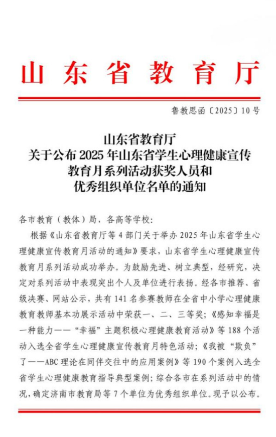 关注日前,在2025年山东省学生心理健康宣传教育月活动中,山东外事职业大学国际商学院教师王淑冉与学生处心理咨询中心教师胡馨元的《四阶段六环节三方协作,助力大学生走出沟通与择业困境》成功入选全省学生心理健康教育指导典型案例,充分体现了学校在心理健康教育领域的扎实工作和积极成效。