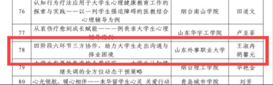 山东外事职业大学案例入选全省学生心理健康教育指导典型案例