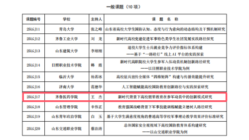 喜报!齐鲁医药学院获批2025年山东省学校国防教育工作研究课题立项