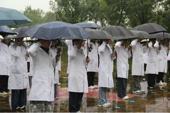在淄博市龙山陵园遗体捐献纪念广场,师生们以敬献花篮、默哀致敬的方式,向捐献者表达最深切的缅怀与敬意。学生代表与教师代表的发言情真意切,全体学生重温医学生入学誓言,彰显了医者仁心与生命至上的坚定信念。