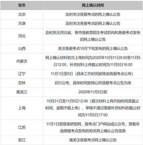 关注2026研考的小伙伴们请注意:网上报名并缴费成功后,还需按照报考点的规定进行“网上确认”,未按时完成网上确认或未通过网上确认审核的考生,报名无效,无法参加考试。目前,部分省市已明确网上确认时间。