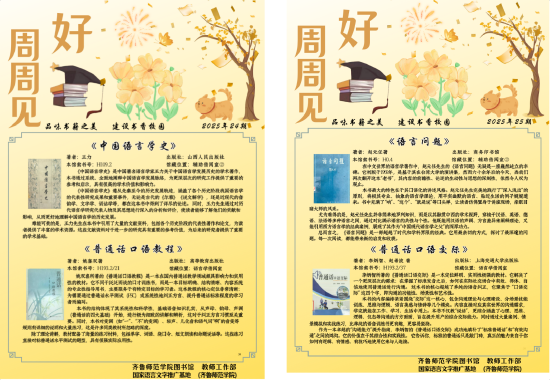 依托微信公众号每周推荐优质汉语言类书籍,持续激发学生对汉字起源与发展的兴趣,增强文化素养与审美能力,营造浓厚的书香校园氛围,推动中华优秀语言文化的传承与弘扬。