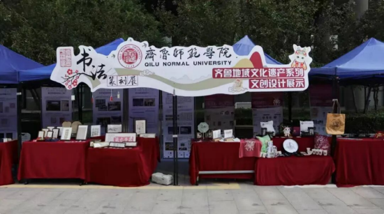在推普周启动仪式上,齐鲁师范学院两项展示活动亮点突出。文学与历史文化学院推出“齐鲁地域文化遗产”系列文创,将语言文字元素巧妙融入古城雅韵、年画等传统文化主题,实现文化传承与语言推广的有机统一。美术学院举办“君子文化”书法篆刻互动展,借助团扇、篆刻、传拓等形式弘扬书法艺术,展现普通话与中华优秀传统文化的深度融合。