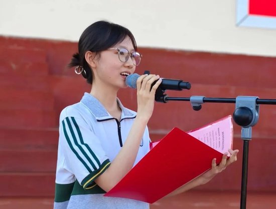 高三学生代表程子浩、尹宇璨、马涵钰同学分享了对“铭记”与“奋进”的理解。他们呼吁同学们不仅要铭记民族与国家的宏大历史,也要珍惜在高中校园度过的宝贵时光,将家国情怀转化为拼搏进取的动力,以青春之我书写时代华章。