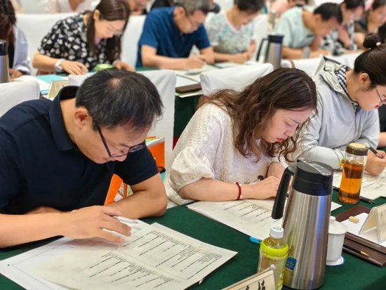 专题培训后,班主任工作基本理论知识测试紧张而有序地进行着。考场上,班主任们坐姿端正,神情专注,提笔疾书,暑期积淀的理论知识与日常工作实践融会贯通后形成的答案跃然纸上。每一道题目的作答,都是一次对育人初心的回望、一次对教育智慧的梳理。这场测试如同一块“试金石”,既夯实了班主任们的理论根基,也为后续赛事的比拼筑牢了知识底盘,让“以赛促学、以学促用”的理念落地生根。