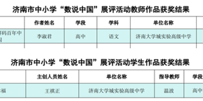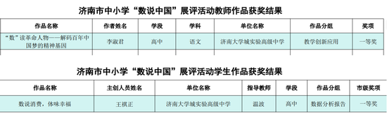 济南市中小学“数说中国”展评活动 济南大学城实验高级中学两项作品荣膺一等奖