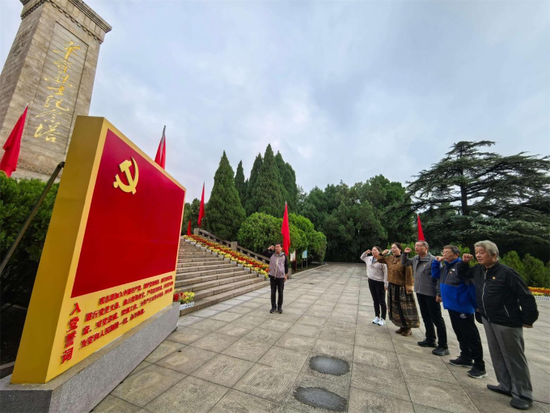 上午九时三十分,队伍抵达本次活动的第一站。在庄严肃穆的纪念塔下,党员同志们重温了入党誓词,铿锵誓言回荡在苍松翠柏之间,彰显着老党员们永不褪色的初心。随后,全体老同志合影留念,定格下这意义非凡的时刻。