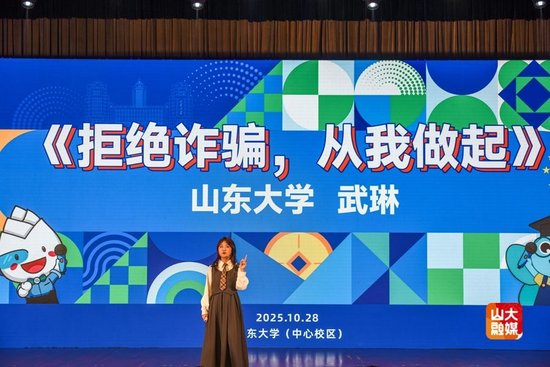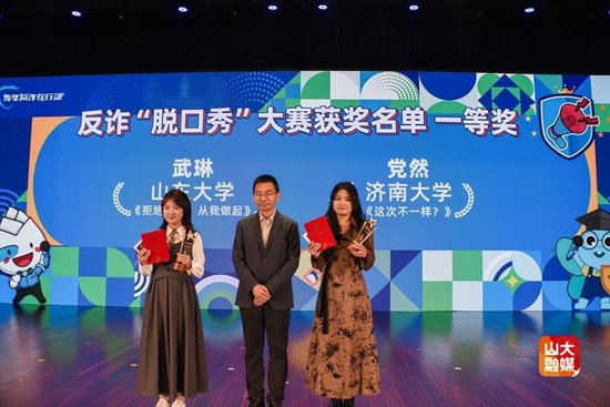 活动一改传统反诈宣传“生硬说教”的模式,巧妙采用大学生喜闻乐见的脱口秀形式,将反诈知识融入诙谐幽默的表演,现场反响热烈,让同学们在欢声笑语中增强防骗“免疫力”。山大学子武琳的作品《拒绝诈骗,从我做起》、林修平的作品《反诈三件套》凭借出色的创意脱颖而出,分别荣获一等奖、二等奖。