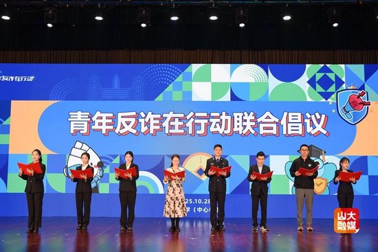 来自山东大学等高校的学生代表共同发出倡议,号召广大青年积极参与反诈宣传,争当反诈工作的宣传者、实践者和推动者。