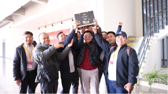 在白沙滩村特色产业山东鲁酱酒业总部,来宾了解鲁酒文化,品尝苹果酵素与酱香白酒,并参观了当地苹果园,亲身感受中国乡村在党建引领下的产业振兴与基层治理实践。