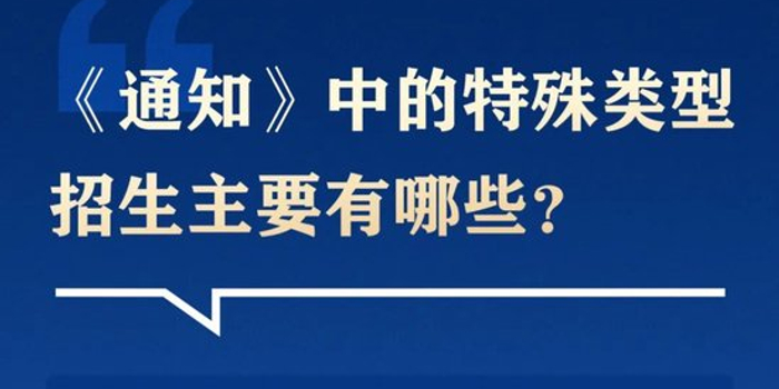 《通知》中的特殊类型招生主要包括艺术类专业招生、高水平运动队招生、保送生、综合评价招生四类,其他特殊类型招生工作另文部署。