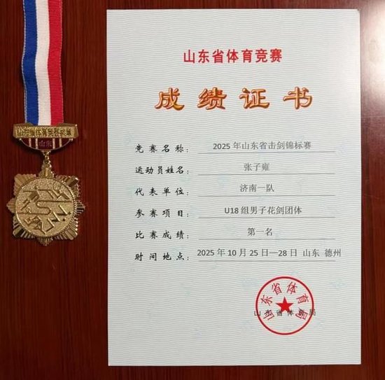 关注10月25日至28日,2025年山东省击剑锦标赛在山东德州举行。该赛事汇聚了全省击剑选手,山东外事职业大学智慧城市学院物联网应用技术专业学生张子雍代表济南一队出战U18组男子花剑团体项目,凭借出色的技术与团队配合,一路过关斩将,最终夺得团体第一名,为学校赢得荣誉。