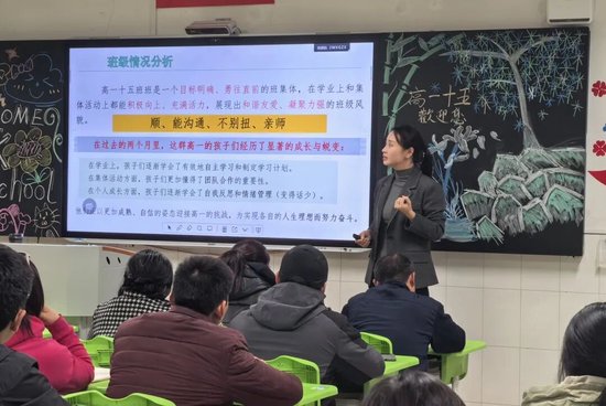 高一年级主任亓莹在年级家长会上,介绍了学校近年来学生学业水平与优势发展的成绩,结合学情检测情况,明确了本学期年级的主要工作方向,并从“认同、理解、信任、配合”四个维度,进一步与家长交流了家校合作的目的和意义,真诚希望家校携手,尽最大的努力,帮助孩子在爱与规则里,长成最好的模样。