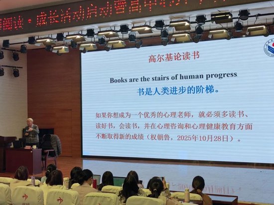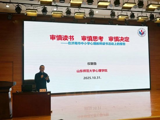 山东师范大学心理学院权朝鲁教授进行了审慎读书、智慧成长主题讲座,分享了自己“读、问、听、写、讲、帮”六位一体读书法。他从“审慎读书”切入,建议心理教师主动选择优质内容,通过深度阅读实现知识内化。在谈到“审慎思考”时,他引用罗素、杜威等学者的观点,探讨了如何对知识进行审辨与运用。权教授还结合真实案例说明了匆忙决策可能带来的问题,并分享了自己在学术纠错与理论澄清方面的经验。针对“critical thinking”这一概念的中文翻译,权教授认为“审慎思维”比“批判性思维”更能准确表达其内涵,这一观点引发了在场教师的深入思考和讨论。