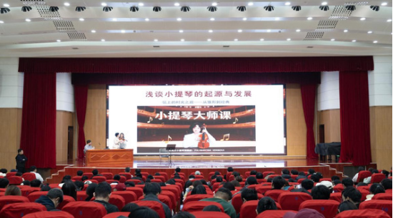 于学生而言,这是一次打通理论与实践的艺术洗礼。Veronika大师将小提琴发展历史与演奏技巧深度融合,既解答了“小提琴为何能兼顾独奏与合奏表现力”等专业疑问,更通过现场示范演奏传递了国际化的艺术审美标准,帮助学生建立起“从乐器演变理解作品内涵”的专业思维方式,切实增强了艺术自信与专业认知。这种“课程+活动+场景”相结合的方式,将艺术教育融入学生的学习与生活全过程,使每一次艺术体验都成为心灵滋养与审美教育的延伸。活动现场,商务英语专业学生刘晓晴带来小提琴独奏表演,Veronika大师针对其演奏细节进行精准指导,让她及在场学生都收获颇丰。