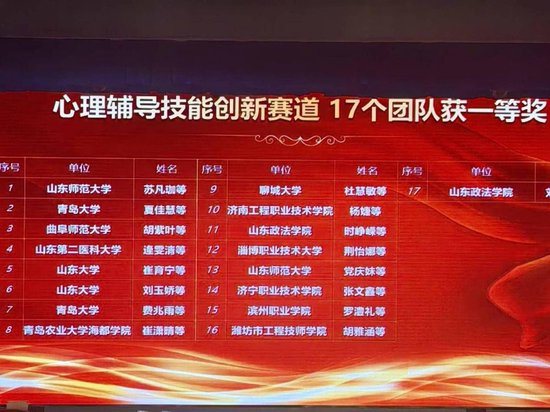 山东省第十七届大学生科技节——山东省大学生心理学应用技能大赛一等奖名单