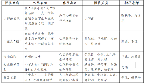 济南工程职业技术学院高度重视本次竞赛,院内前期由党委学工作部组织校内宣传、报名,充分发挥教师和学生优势,通过制定方案、组建团队、打磨作品、专业教师精心辅导等多环节进行筹备。经过角逐,学院3支队伍进入省决赛,全部获得一等奖,且在今年新增的“人工智能心理场景设计赛道”的16项一等奖作品中占2项。学院将以此次赛事为契机,进一步培养院内学生心理骨干队伍,助力学院高质量发展。