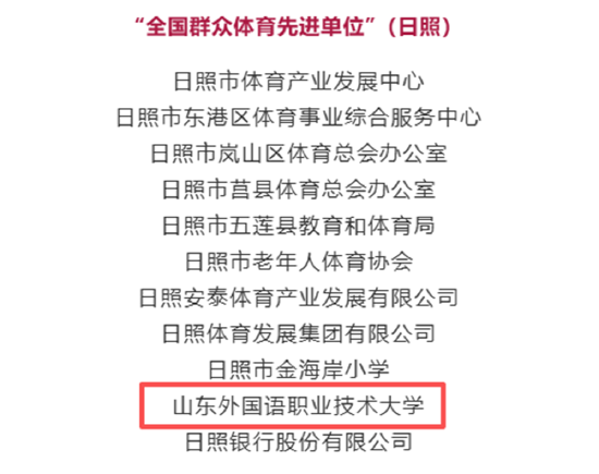 山东外国语职业技术大学荣获“全国群众体育先进单位”称号