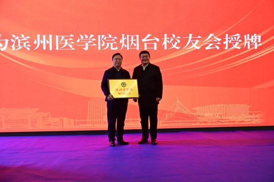 赵景刚代表学校为烟台校友会授牌,与会领导为现场参会的会长、名誉会长、副会长、秘书长、副秘书长颁发聘书。烟台校友会会长、1980级校友邹志强作大会致辞,2013级校友管培中作校友会筹备工作报告。学校校友会秘书长、合作发展处负责人宣读《关于同意成立滨州医学院烟台校友会的批复》及第一届理事会成员名单。与会人员共同观看学校宣传片,潍坊校友会会长邓爱军、江苏校友会会长王红星代表兄弟校友会发来祝贺视频。1989级校友杨芳、1993级校友乔广东作为校友代表发言,烟台校友会向学校赠送了纪念品。