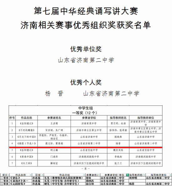 诵读传古韵,翰墨写华章。接连在诵写讲赛事中取得优异成绩,是济南二中长期坚持“五育并举”、深耕语言文字工作的必然结果。这不仅为学校赢得了荣誉,更激发了广大师生学习中华经典、规范使用国家通用语言文字的热情。学校将继续以此为契机,深入推进素质教育,为传承中华优秀传统文化、培养新时代优秀青年贡献力量。