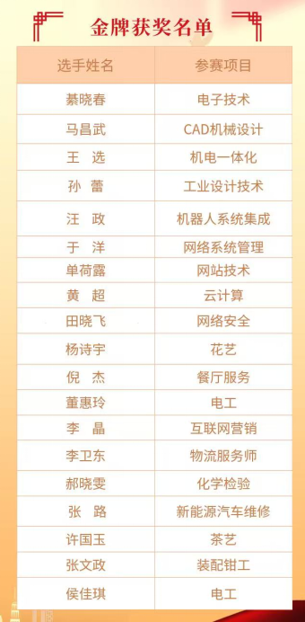 关注日前,烟台市人社局公布第一届烟台市职业技能大赛获奖名单,烟台职业学院获金牌19个、银牌11个、铜牌7个、优胜奖7个,位居奖牌榜首位,充分展现了学校在技能人才培养方面的综合实力。