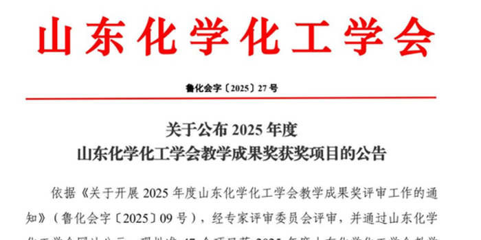 济宁学院团队喜获2025年度山东化学化工学会教学成果一等奖