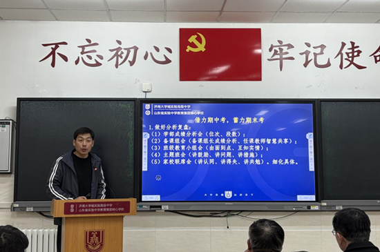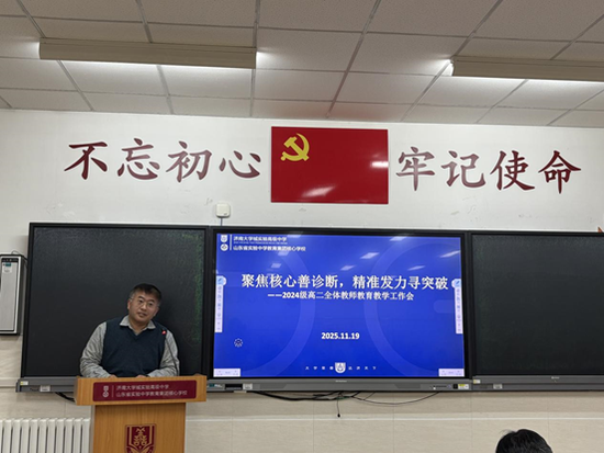 关注11月19日,济南大学城实验高级中学高二学部期中教学质量分析会在学校多元厅举行。高二学部全体教职工参会,复盘期中成效、共商提质举措。学校党委副书记校长张家鹏、分管副校长刘威、教科室主任张吉山等出席会议。会议由学部主任吕全心主持。