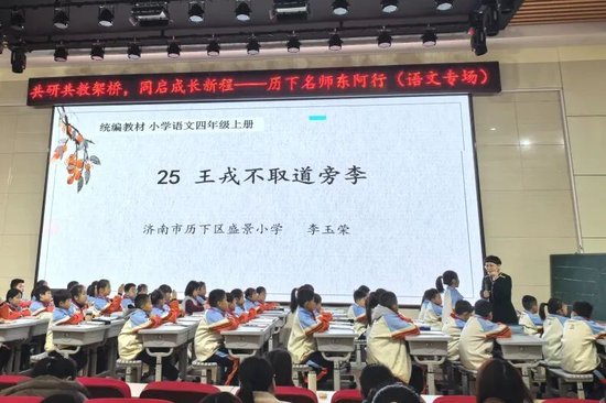 语文专场聚焦核心素养,三位名师展示了新课标下的教学新样态。历下区盛景小学李玉荣老师执教《王戎不取道旁李》,巧妙融合逻辑推理与文言品读,搭建起从“阅读”通往“表达”的进阶路径,生动诠释思辨性阅读教学策略。