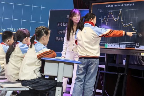 龙鼎实验学校谢仲莉老师执教《折线统计图》聚焦数据分析观念培养,并结合双重身份,分享了在数学作业中渗透文化元素、拓宽学科育人边界的经验。