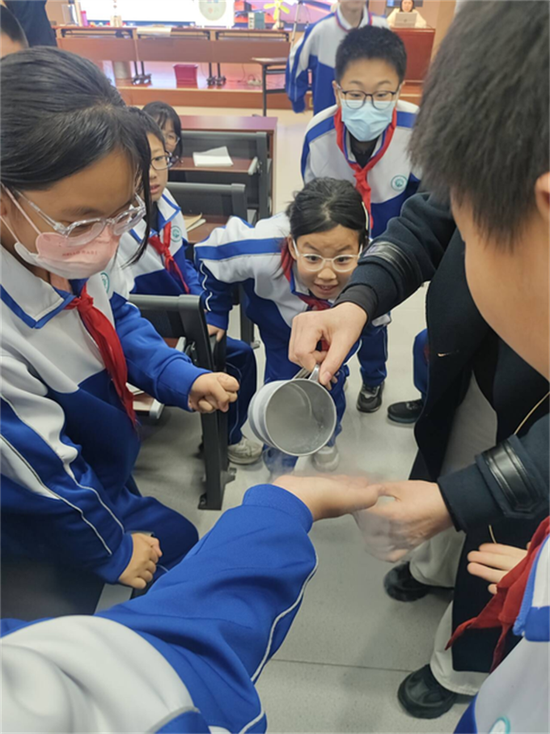 实验秀的重头戏随即上演。“视觉暂留与频闪效应”揭示了动画与电影的成像奥秘;“光的偏振——变色的秘密”展示了3D电影与液晶显示的技术基础;而“光栅衍射——隐形术”更是让男同学的身体在特定光栅下“神奇消失”,引得全场惊呼。在“神奇的低温世界”环节,液氮(-196℃)的极寒特性通过“冻气球”“鲜花脆化”等实验震撼呈现,孟老师巧妙关联了食品速冻保鲜、超导技术等前沿应用,将深奥的原理化为直观的体验。