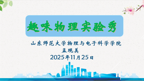 关注2025年11月25日下午,作为济南舜耕中学第二届科技嘉年华系列活动的重磅环节,一场名为“趣味物理实验秀”的科普盛宴在济南舜耕中学精彩上演。本次活动由济南舜耕中学科学教研组策划组织,特邀山东师范大学物理与电子科学学院硕士研究生导师孟现美主讲,面向全体初一年级学生,现场互动热烈、惊叹连连。活动由初一年级主任张雯婷主持,杨国营校长亲临现场,与同学们共同沉浸于物理学的奇幻之旅。