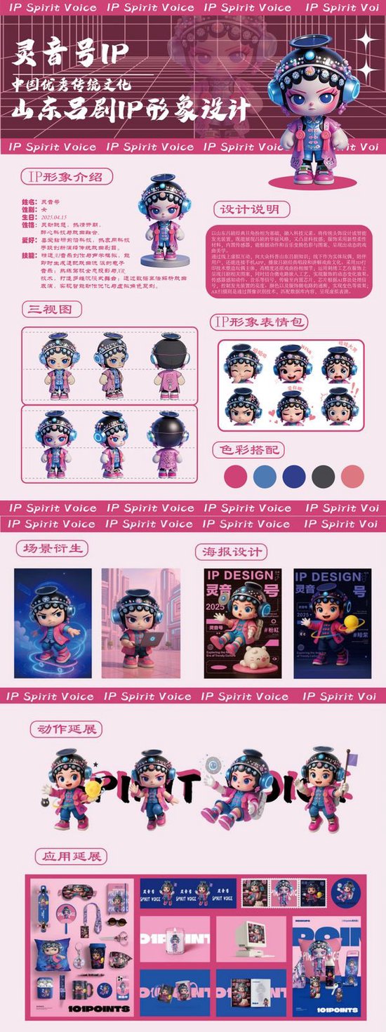 二等奖 作品名称《山东吕剧IP形象设计——灵音号》 作品作者:视觉传达设计2306 庞如月 指导教师:许超