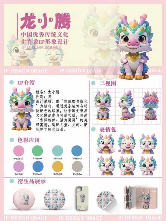 三等奖 作品名称《龙小腾——生肖龙IP形象设计》 作品作者:视觉传达设计2301 刘洋 指导教师:许超、周桂月