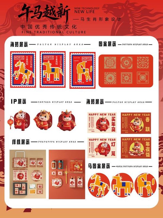 三等奖 作品名称《十二生肖——马》 作品作者:视觉传达设计2301 王彦婷、王子月、谭梦娇 指导教师:许超、周桂月