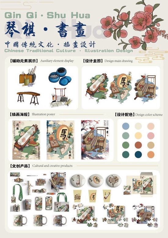 三等奖 作品名称《琴棋书画》 作品作者:视觉传达设计2303 牛宇俊 指导教师:周桂月