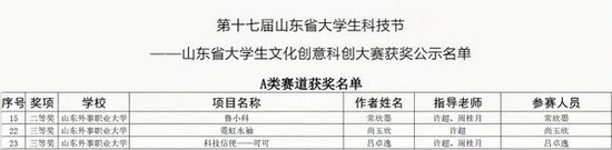 山外大学子在第十七届山东省大学生科技节文化创意科创大赛中斩获佳绩