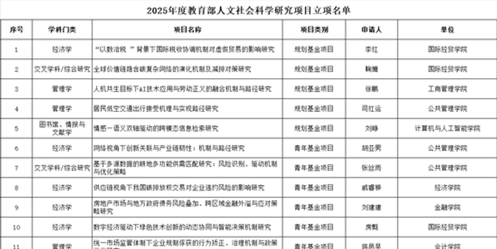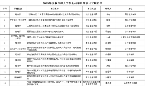 教育部人文社会科学研究项目是我国人文社科研究领域具有权威性与影响力的标志性科研项目之一,是衡量高校科研实力和创新能力的重要指标。多年来,学校积极发挥有组织科研的驱动作用,构建校院联动、协同推进的项目培育体系,实施全过程精细化管理与服务,显著提升了高层次科研项目的申报质量与立项率。学校将以此立项为契机,进一步优化科研创新生态,加强有组织科研布局,持续推动高水平社科研究,更好赋能学校高质量内涵式发展。
