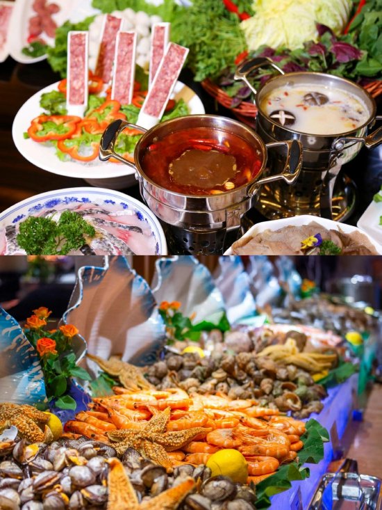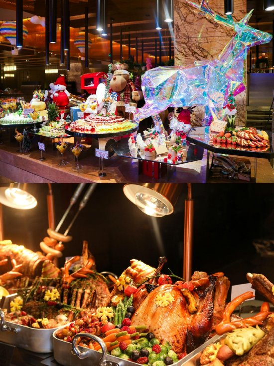 ✅ 星级主厨限定菜单:位上菜品(小青龙,鹅肝,蓝宝石生蚝)松叶蟹腿、刺身级冰山甜虾、挪威三文鱼、海参、鲍鱼、碳烤长柄安格斯战斧牛排、烟熏美式牛肋骨牛排、圣诞火鸡、圣诞火腿、新疆烤全羊、大闸蟹、梭子蟹、安格斯黑牛海鲜小火锅、炉端烧、烧鸟、限定圣诞树根蛋糕,搭配热红酒和特调鸡尾酒,舌尖直接开启圣诞狂欢!