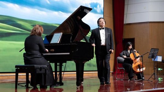 音乐会在开场舞《一条大河》中拉开帷幕,校艺术团民舞部的学子们以灵动舒展的舞姿,勾勒出山河壮阔的美好图景,瞬间点燃了现场气氛。随后,别兆平带来的小提琴独奏《爱的礼赞》《如愿》《化蝶》旋律悠扬,卫昱彤的深情演绎搭配张瀚文的钢琴伴奏,让经典曲目焕发新的艺术魅力,婉转琴声中传递着真挚情感。吴静寅的美声演唱《天边》《啊 我的太阳》,以醇厚嘹亮的嗓音征服全场,尽显声乐艺术的独特韵味。